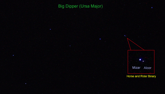 आकाश में चमकते सात तारों के समूह में पंक्ति के एक स्थान पर वशिष्ठ को स्थित माना जाता है। दूसरे (दाहिने से) वशिष्ठ और उनकी पत्नी अरुंधती को दिखाया गया है। अंग्रेज़ी में सप्तर्षि तारसमूह को बिग डिपर या ग्रेट बियर (बड़ा भालू) कहते हैं और वशिष्ठ-अरुंधती को अल्कोर-मिज़र कहते हैं।